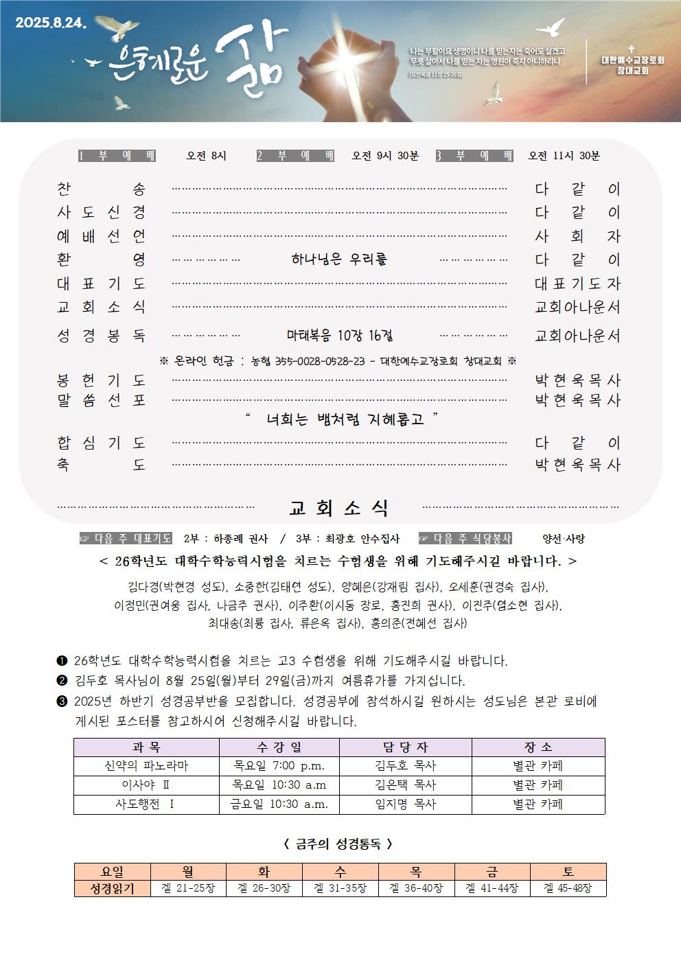 2025년 8월 24일 주보