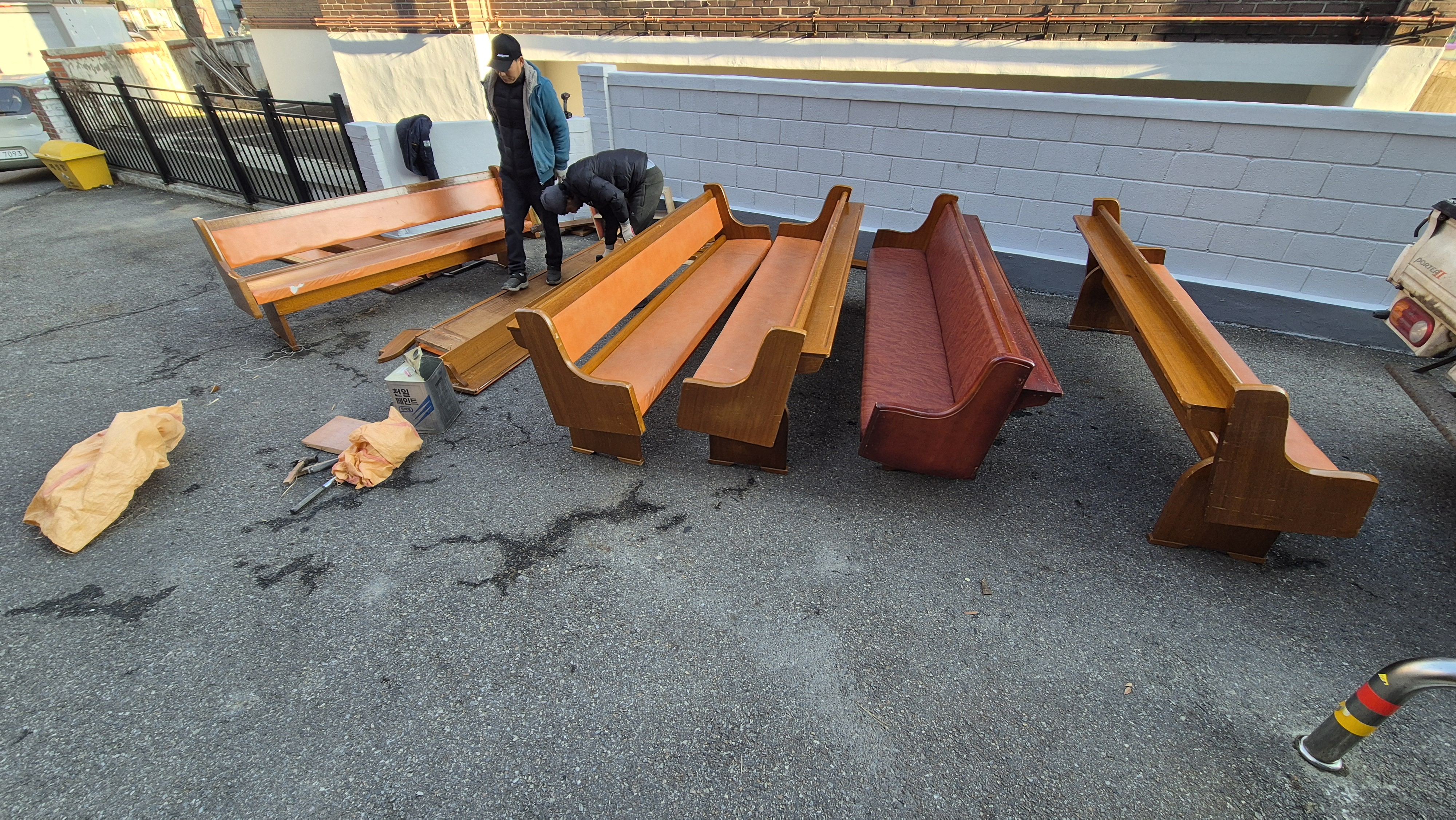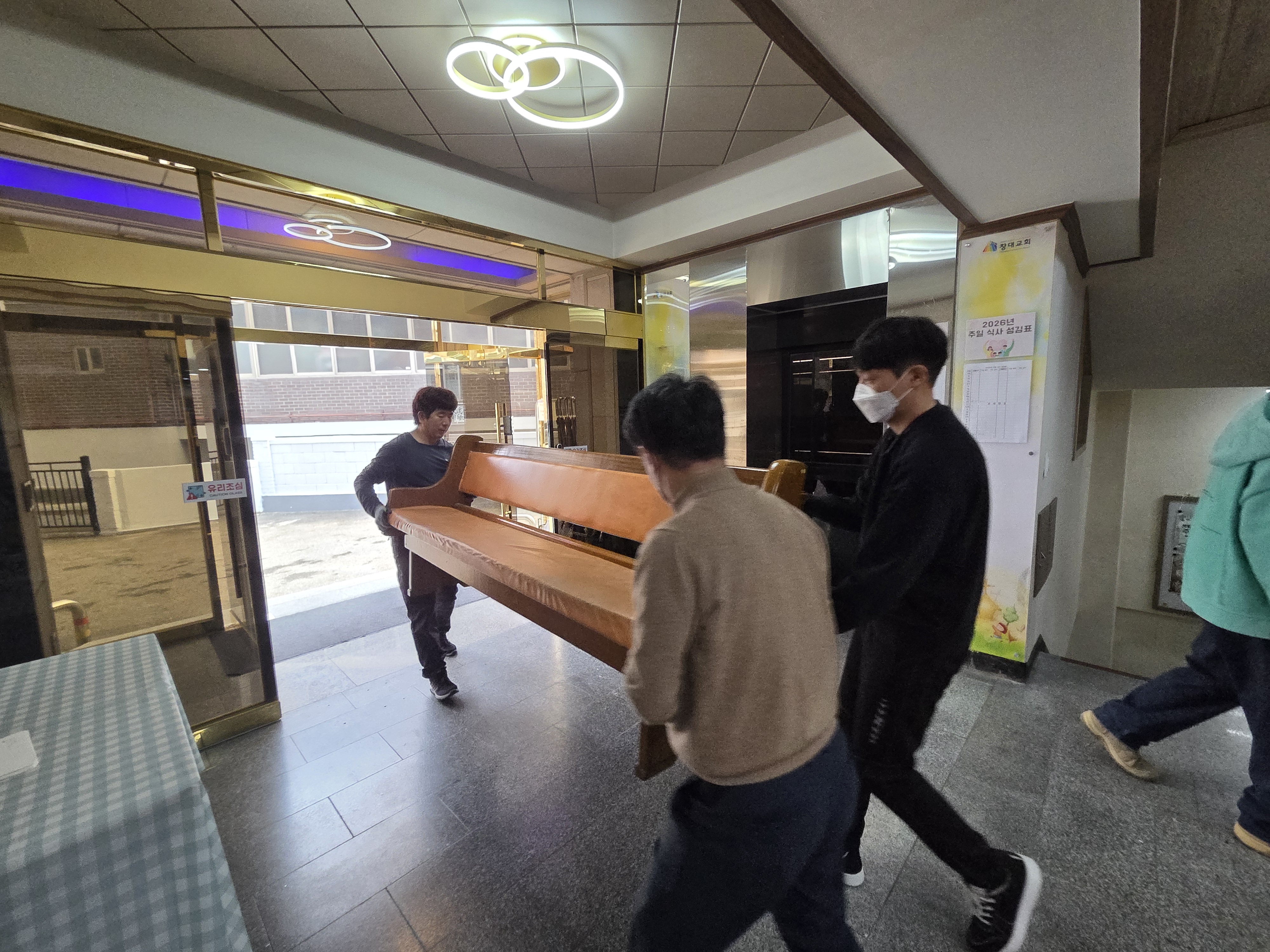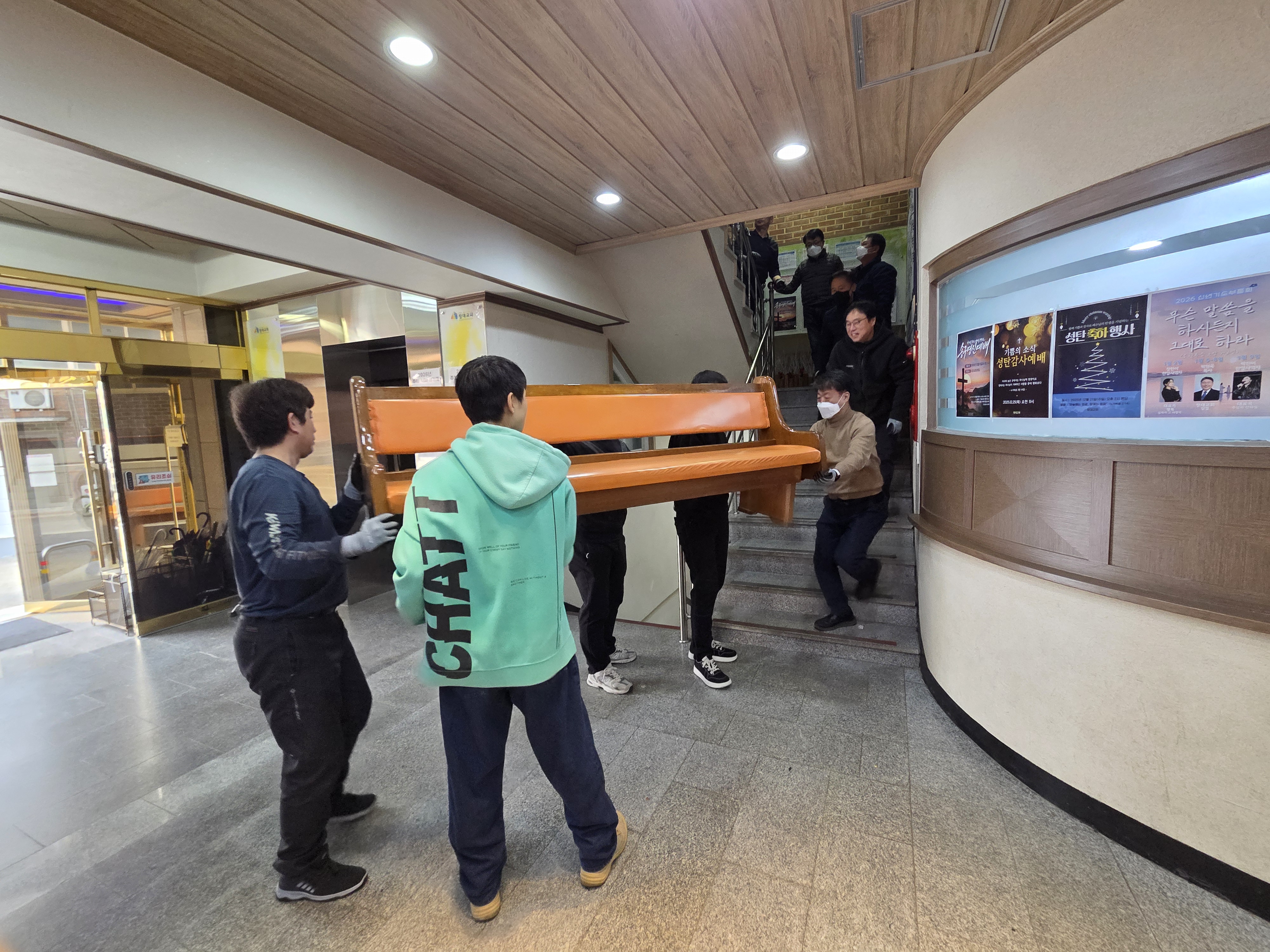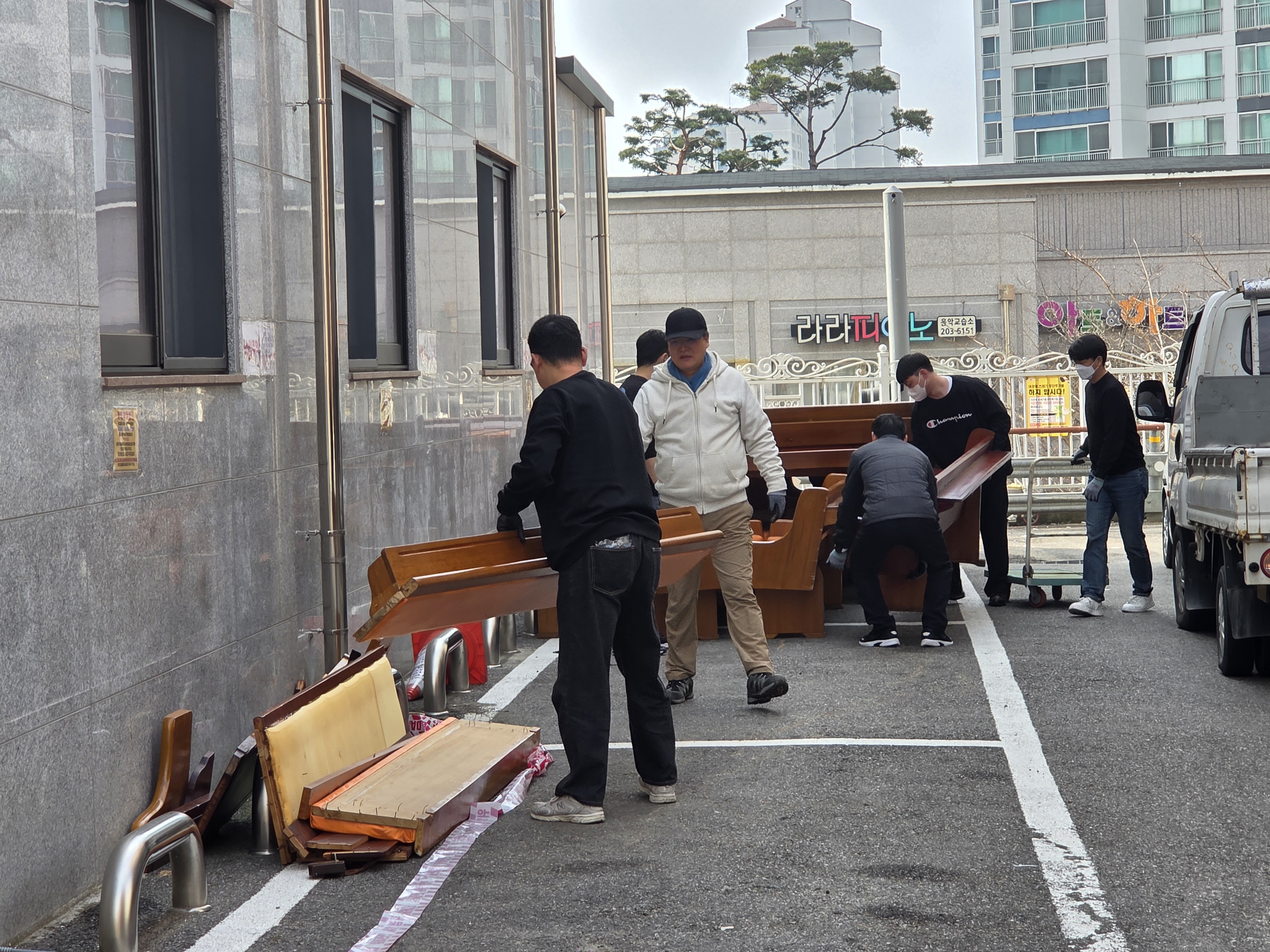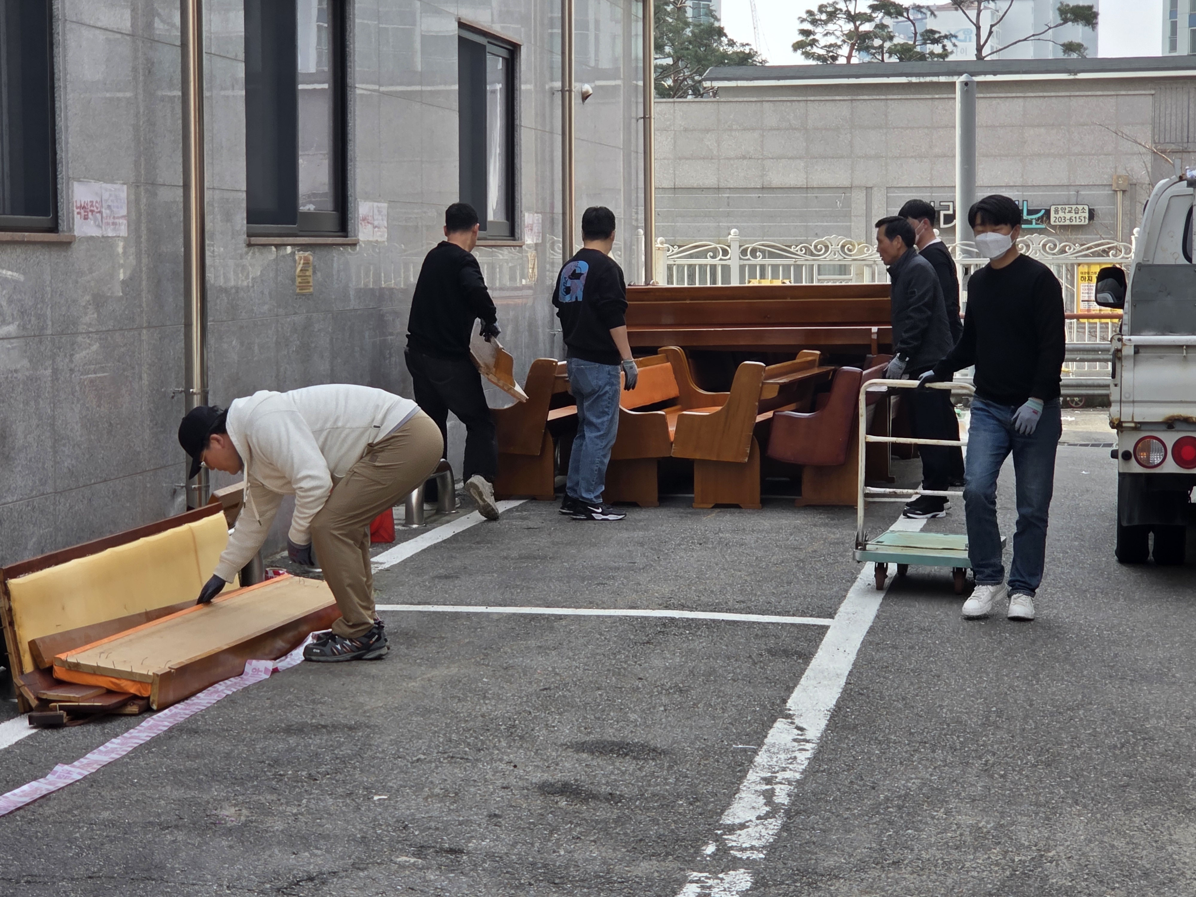 장의자 반출 및 설치 작업