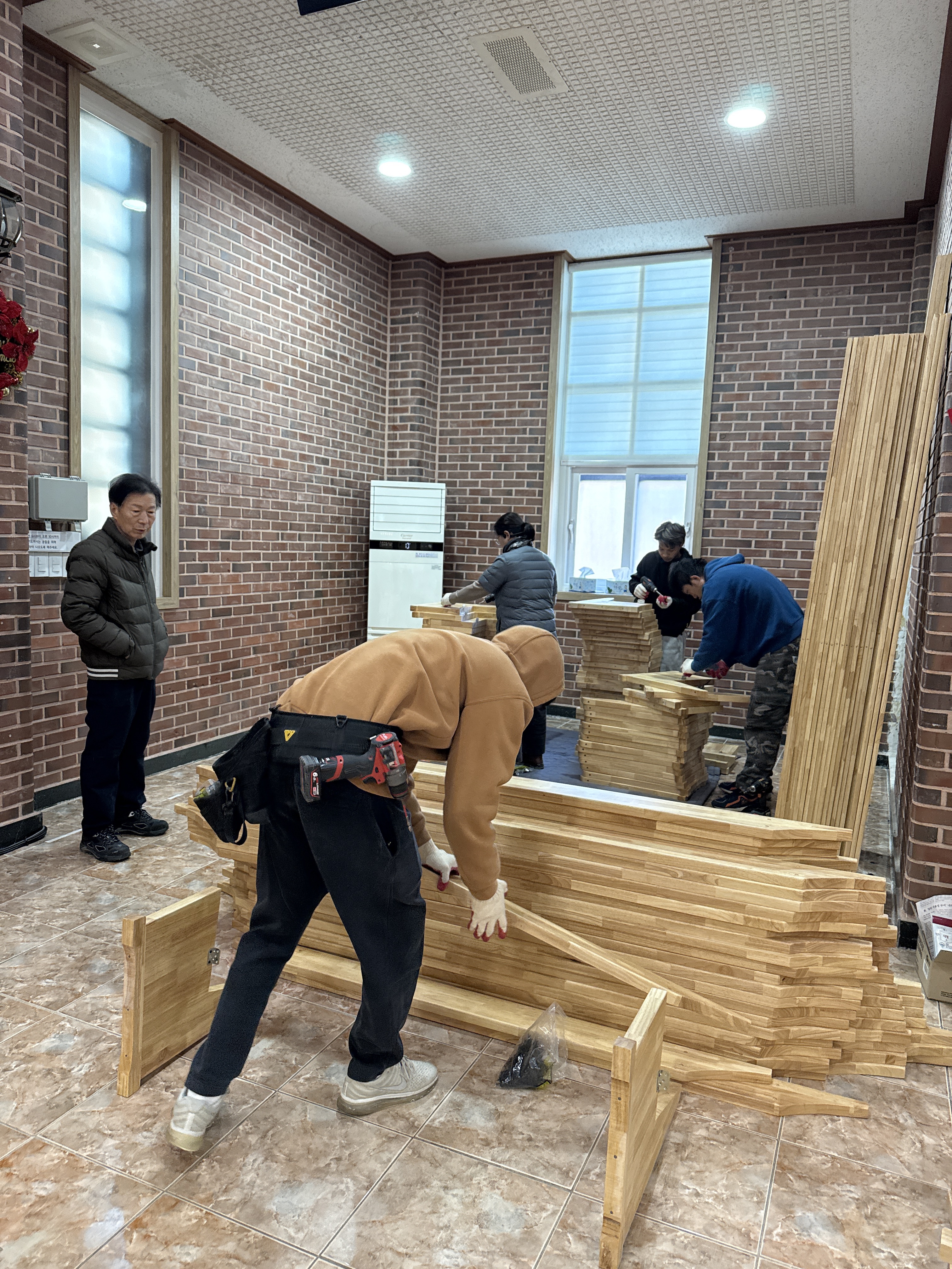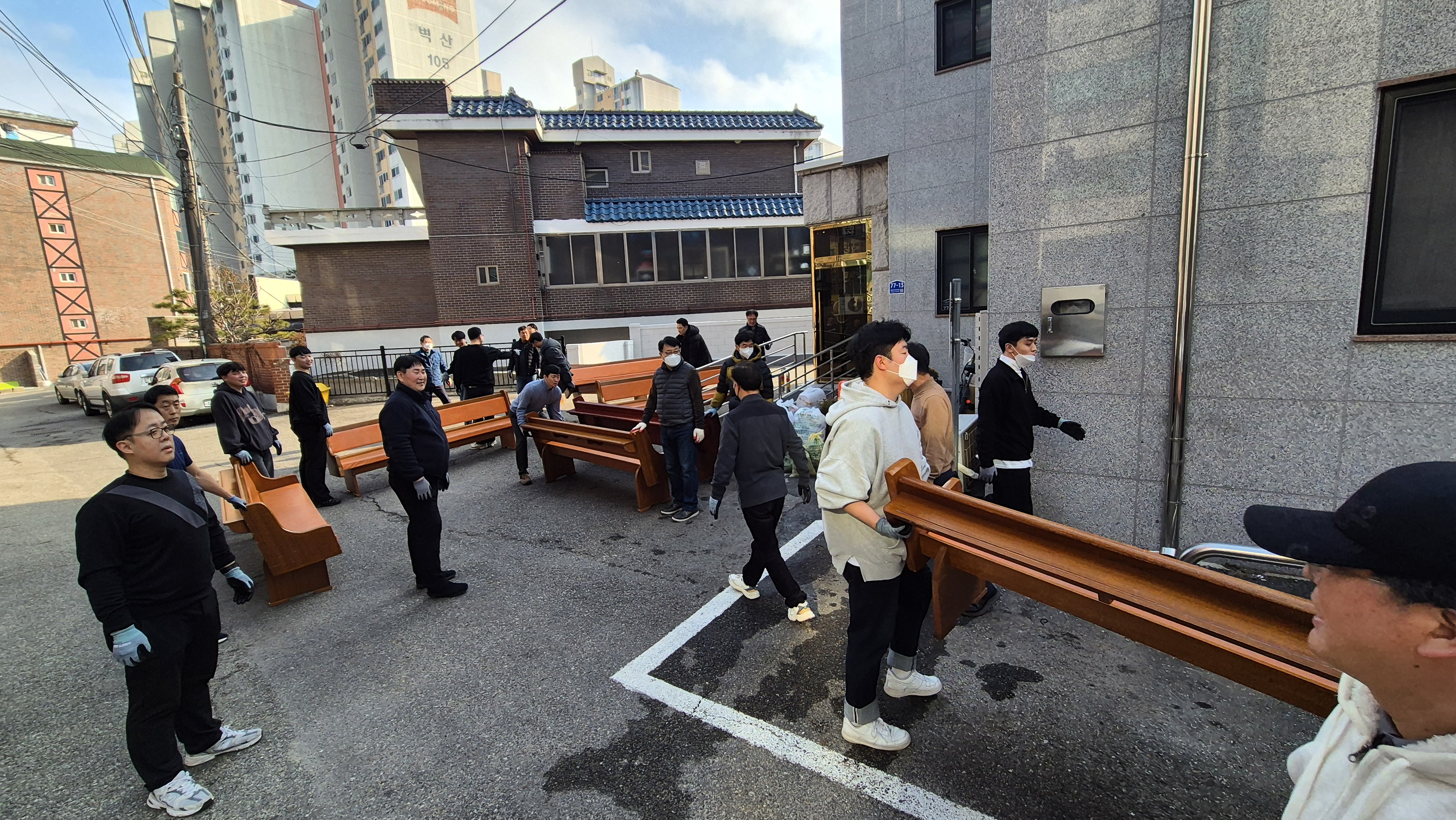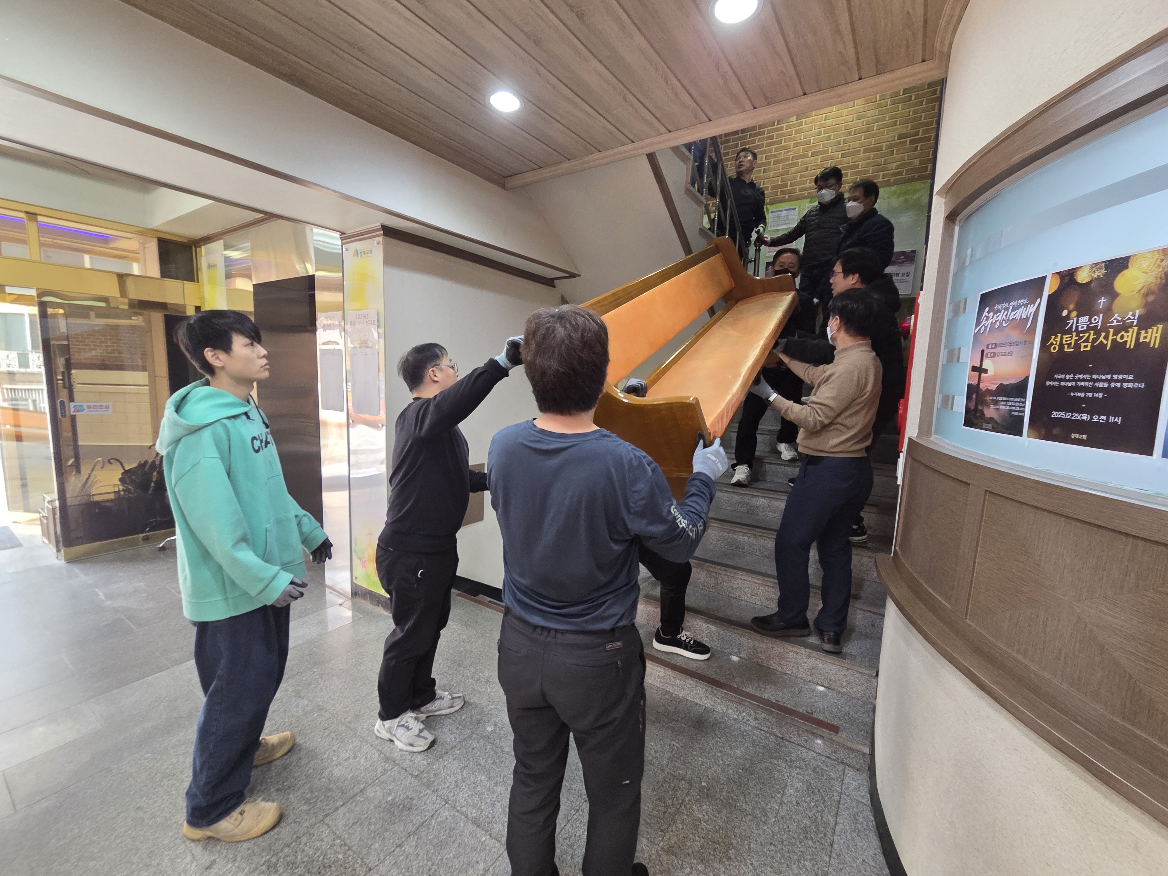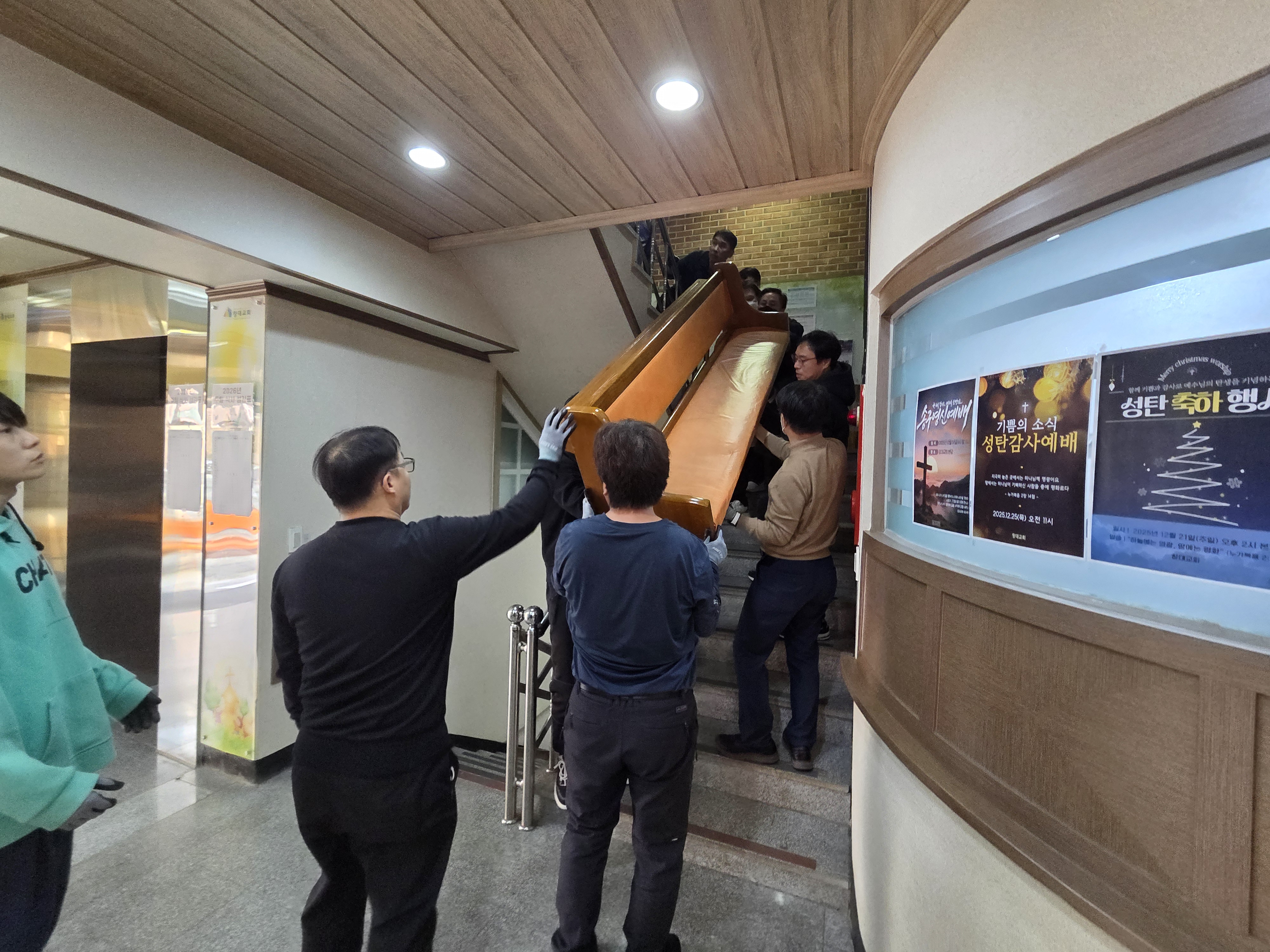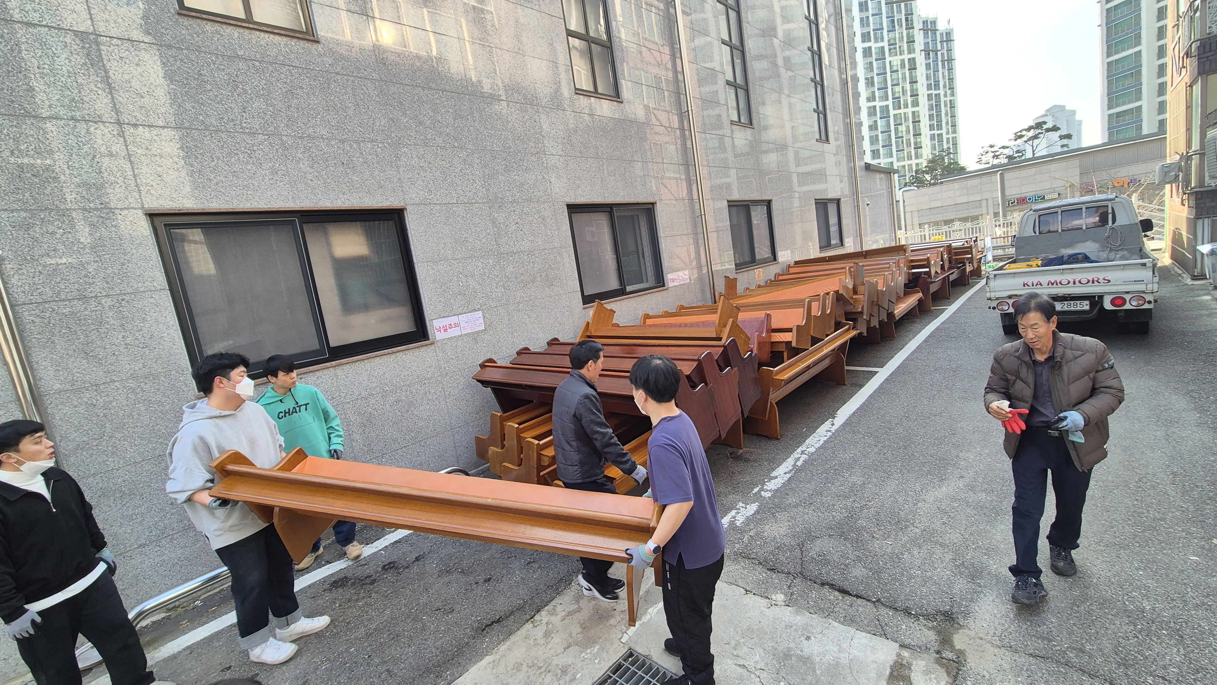 장의자 반출 및 설치 작업
