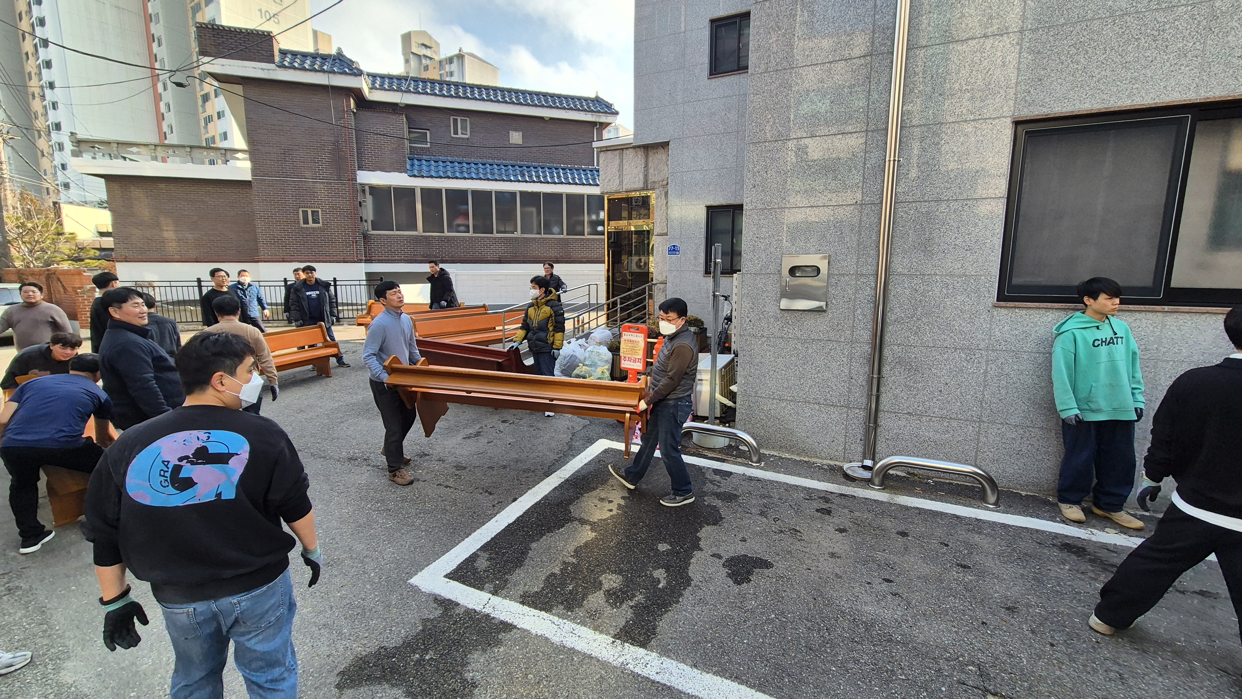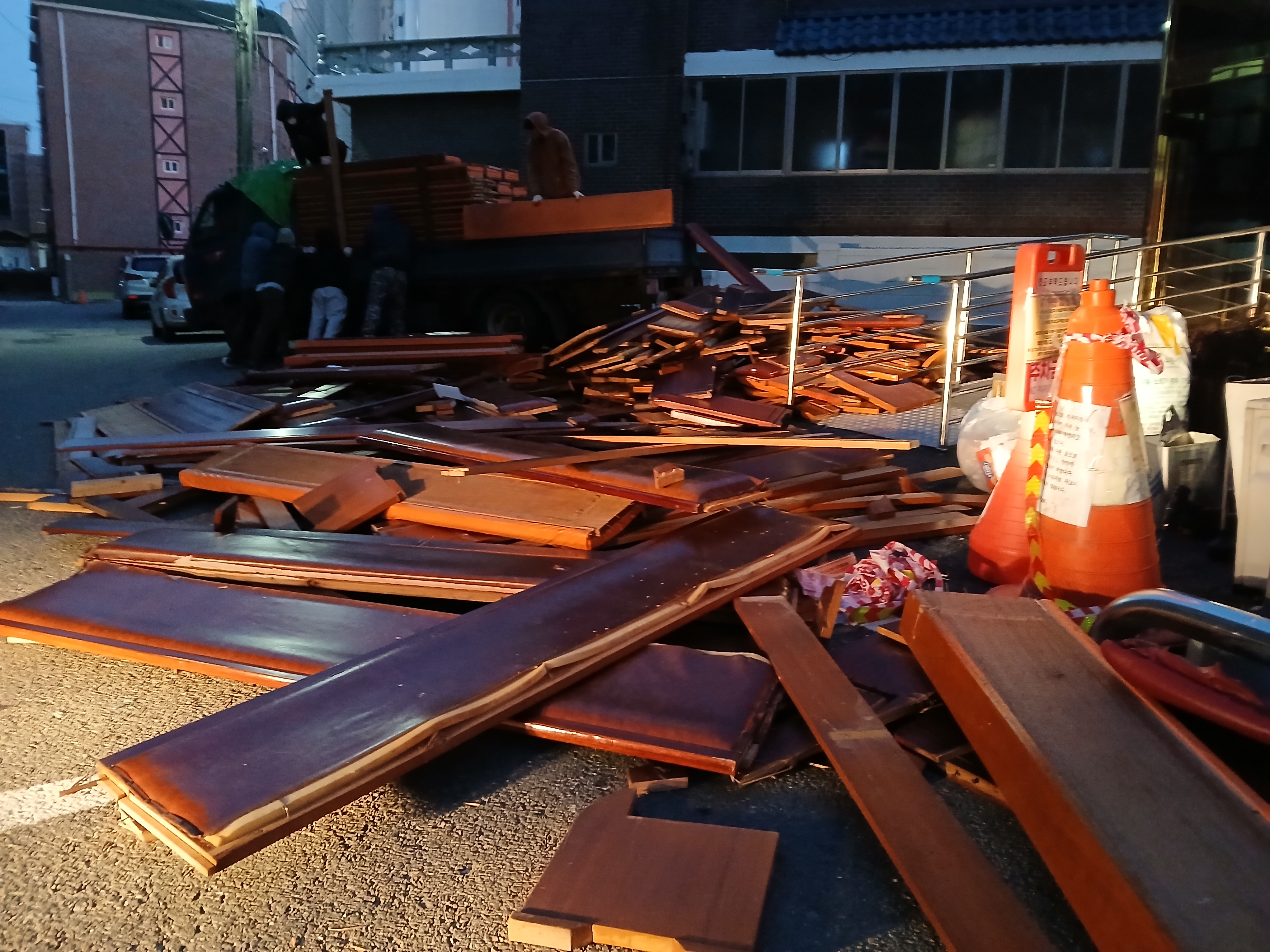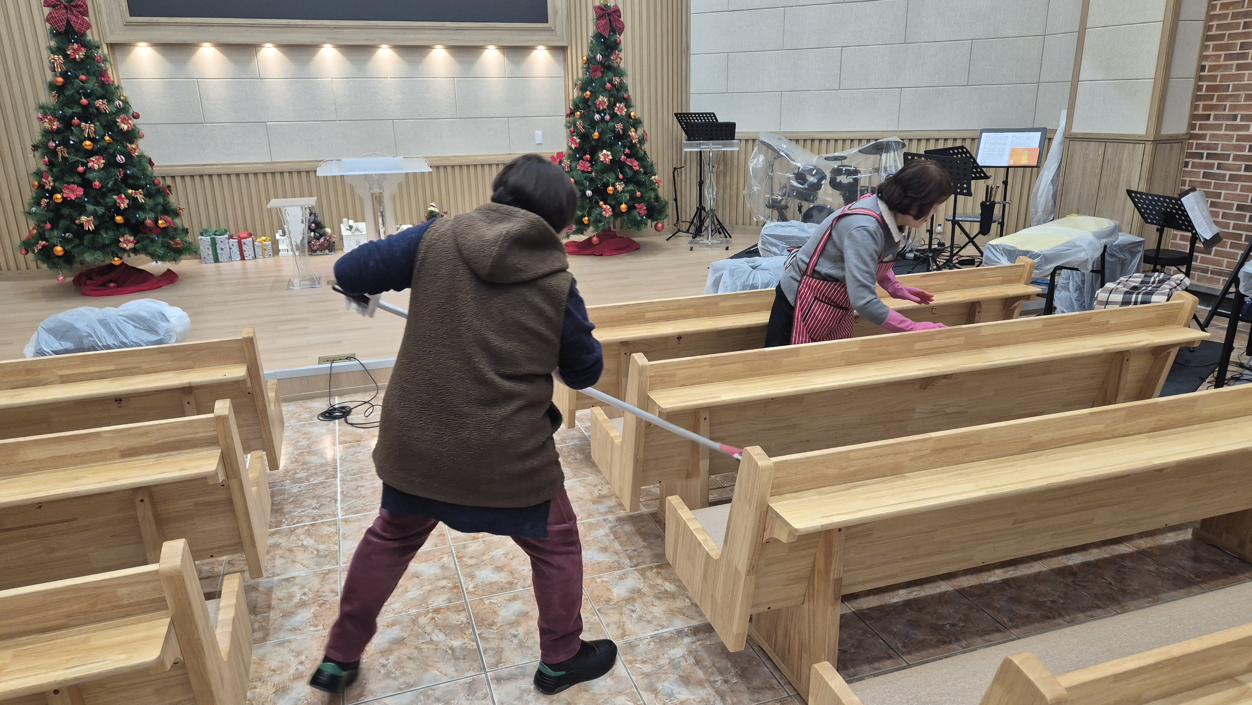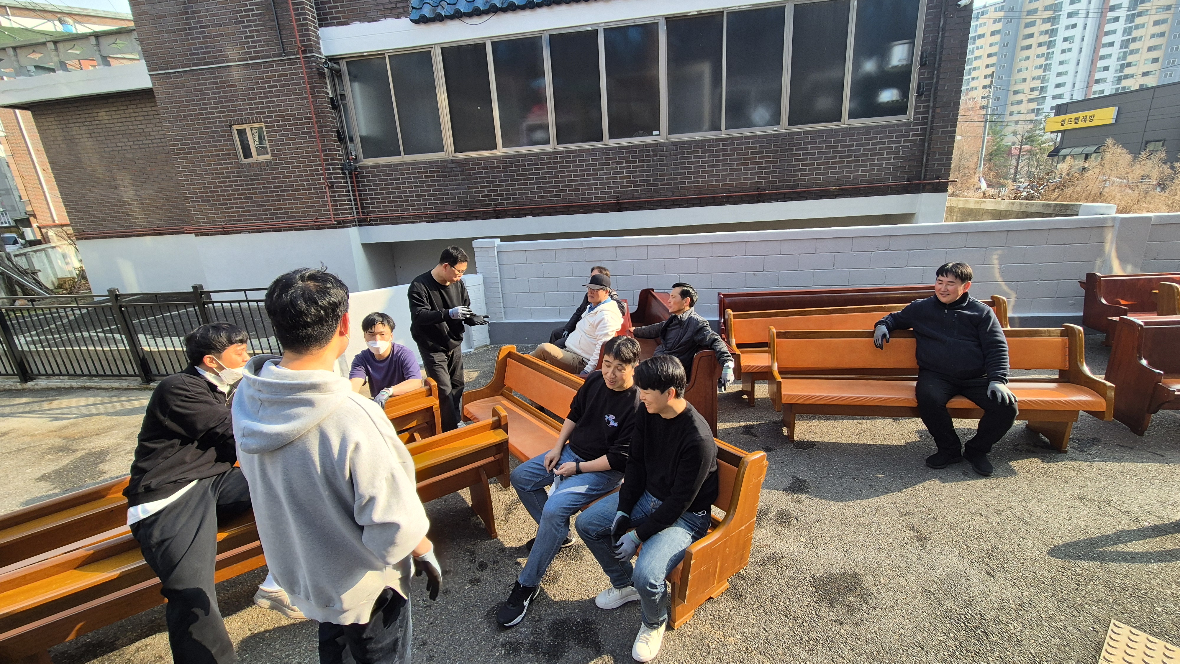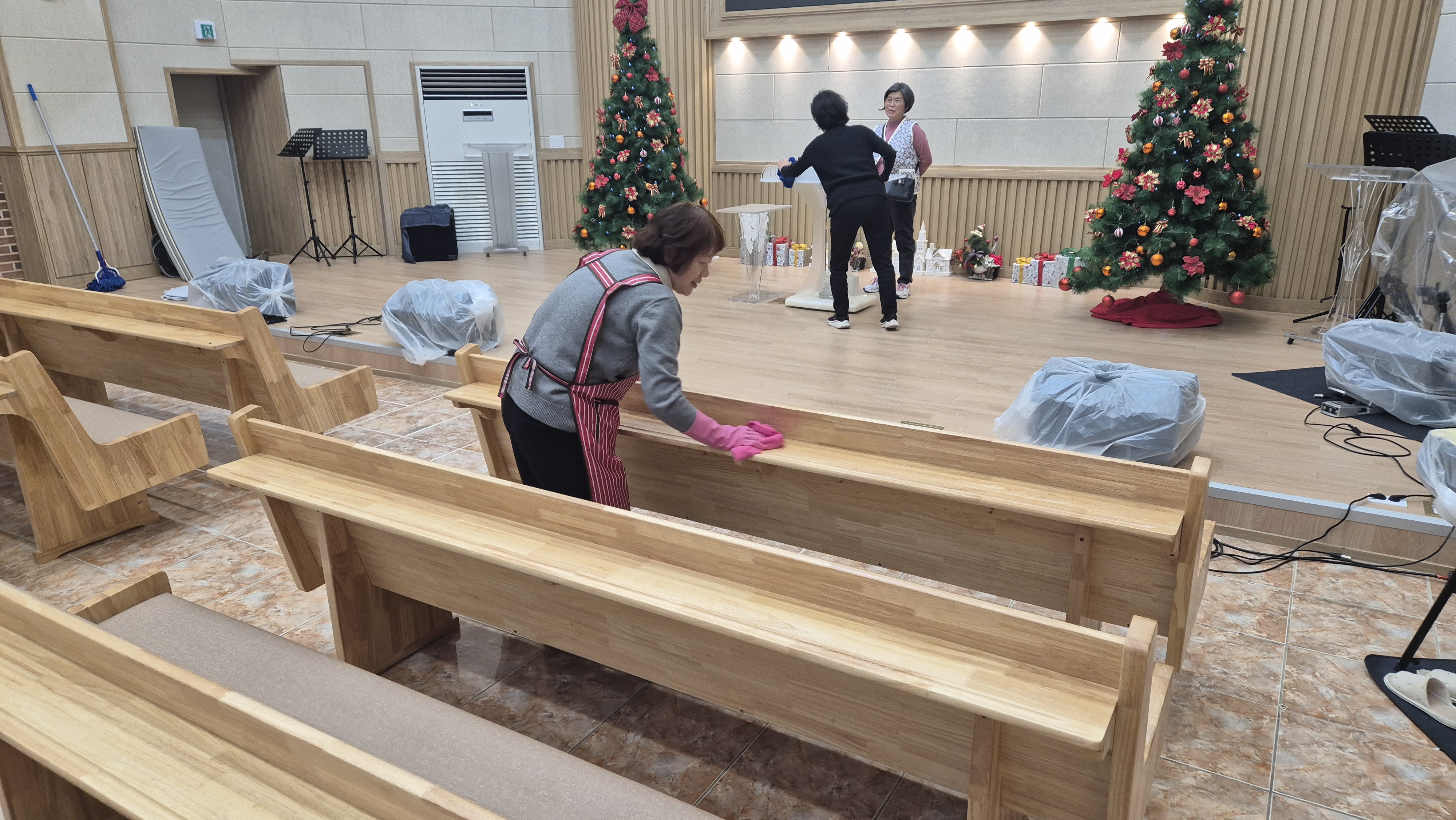 장의자 반출 및 설치 작업
