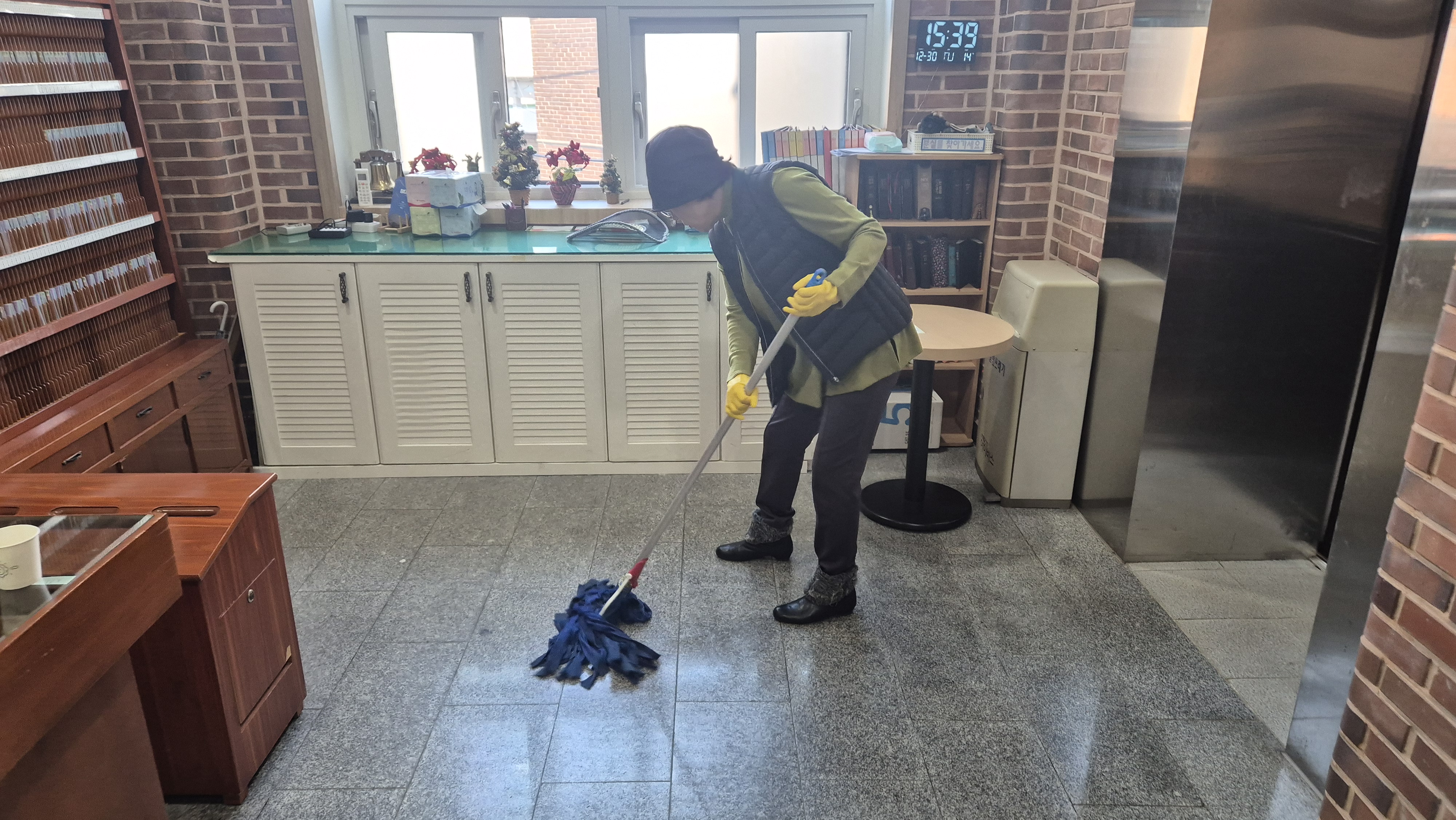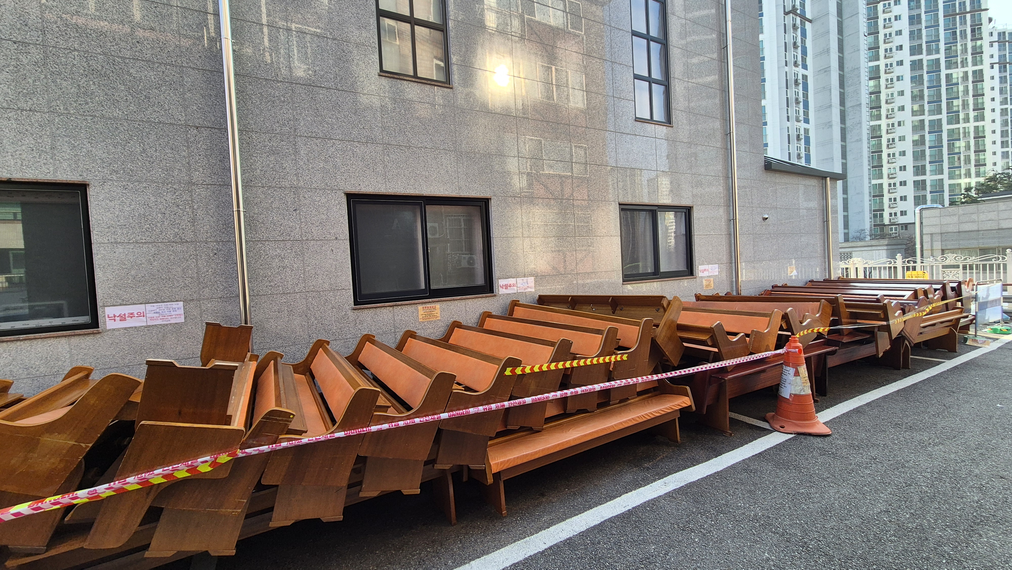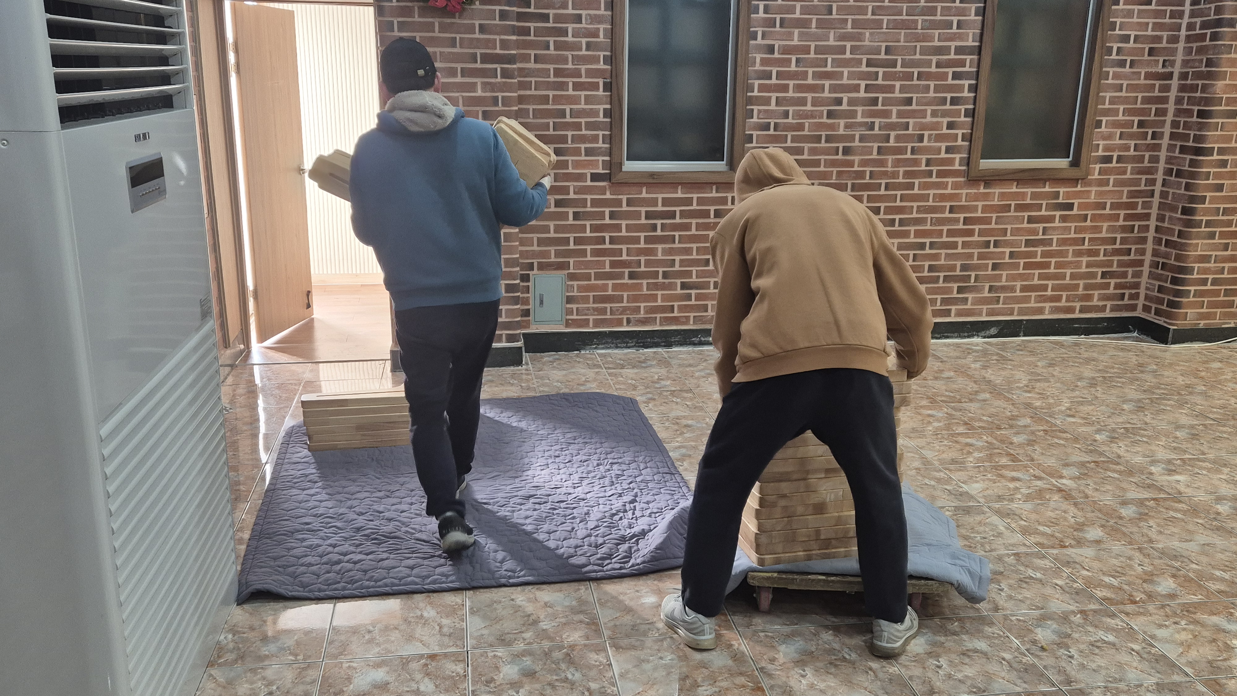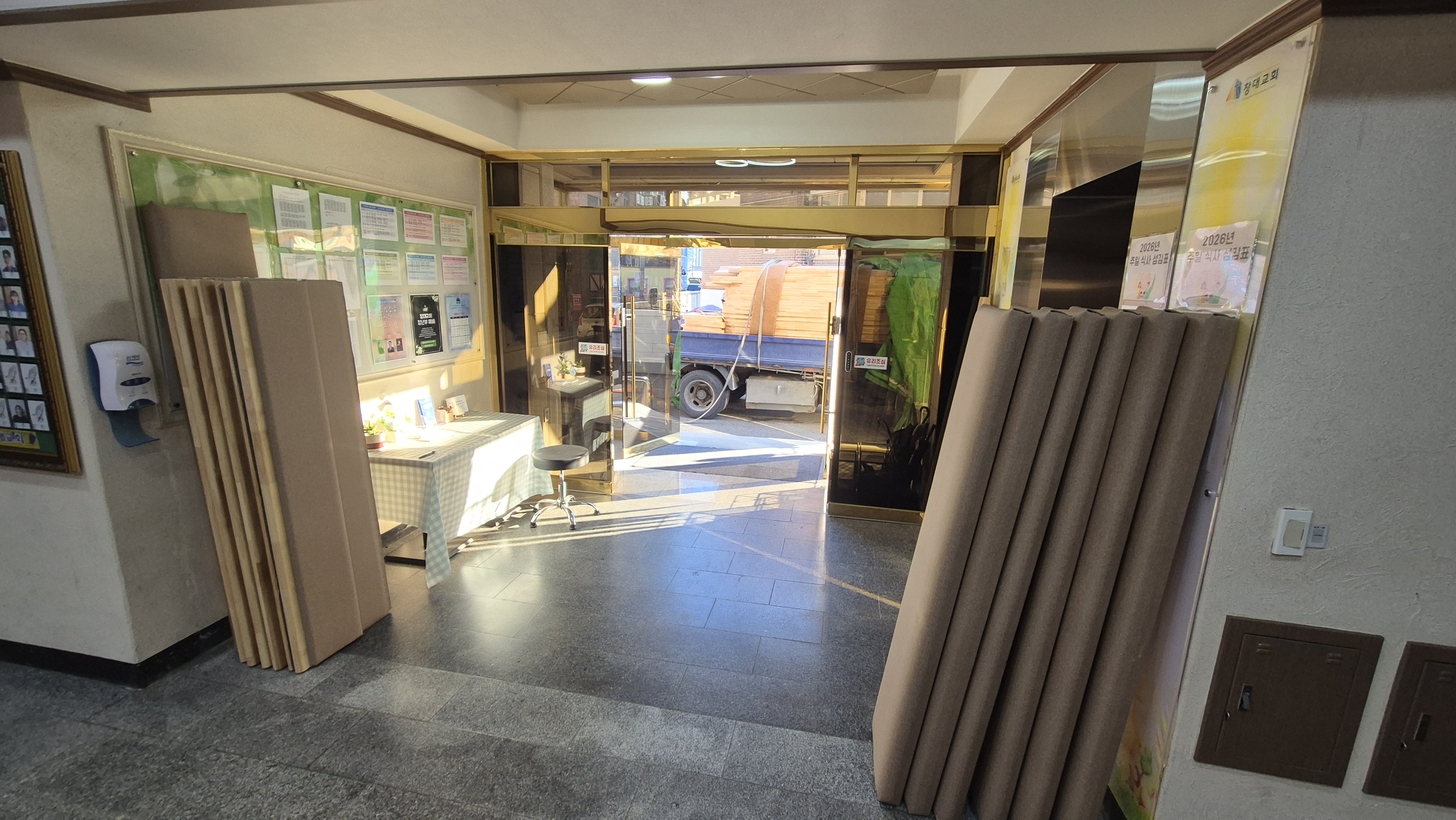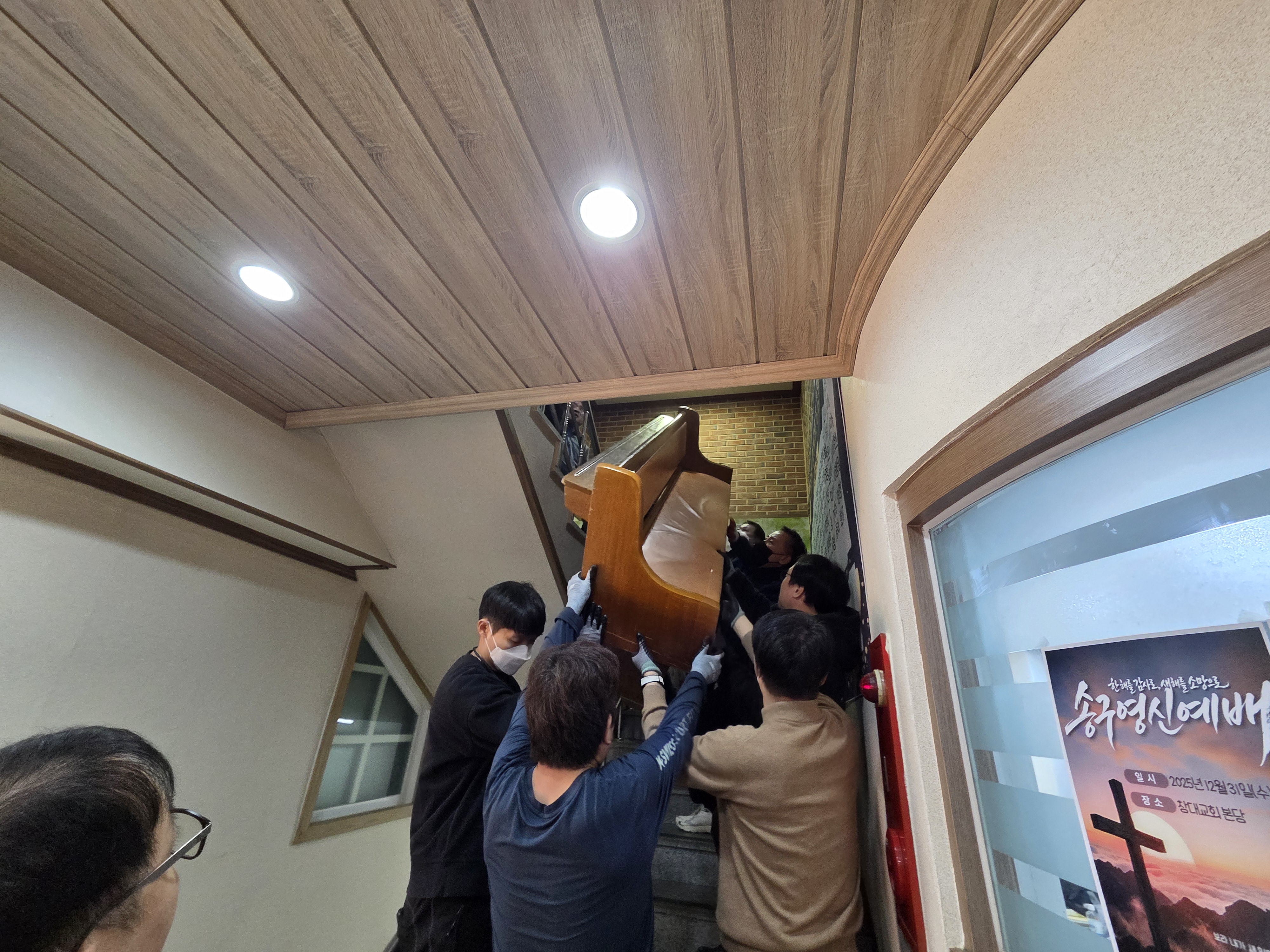 장의자 반출 및 설치 작업