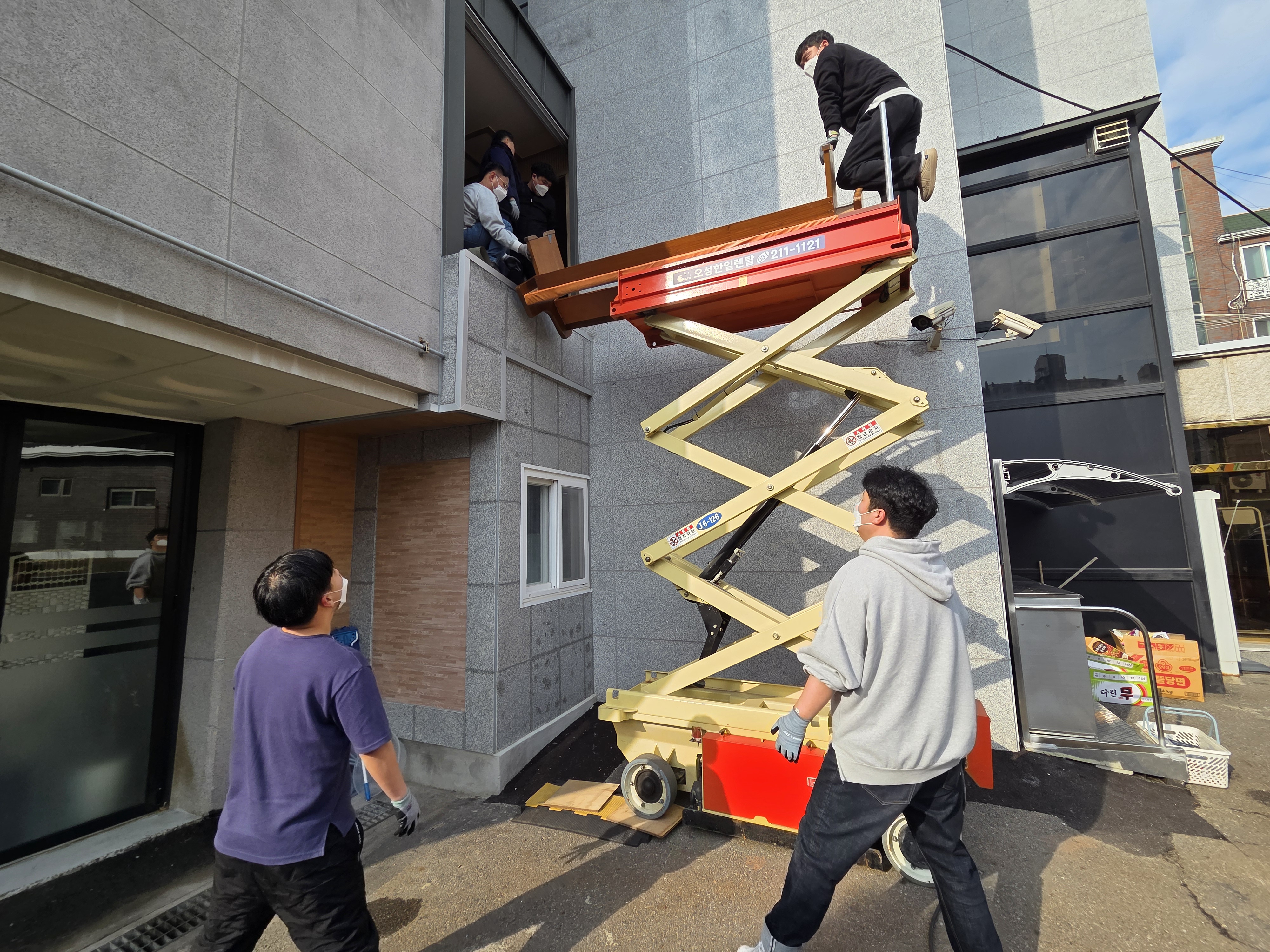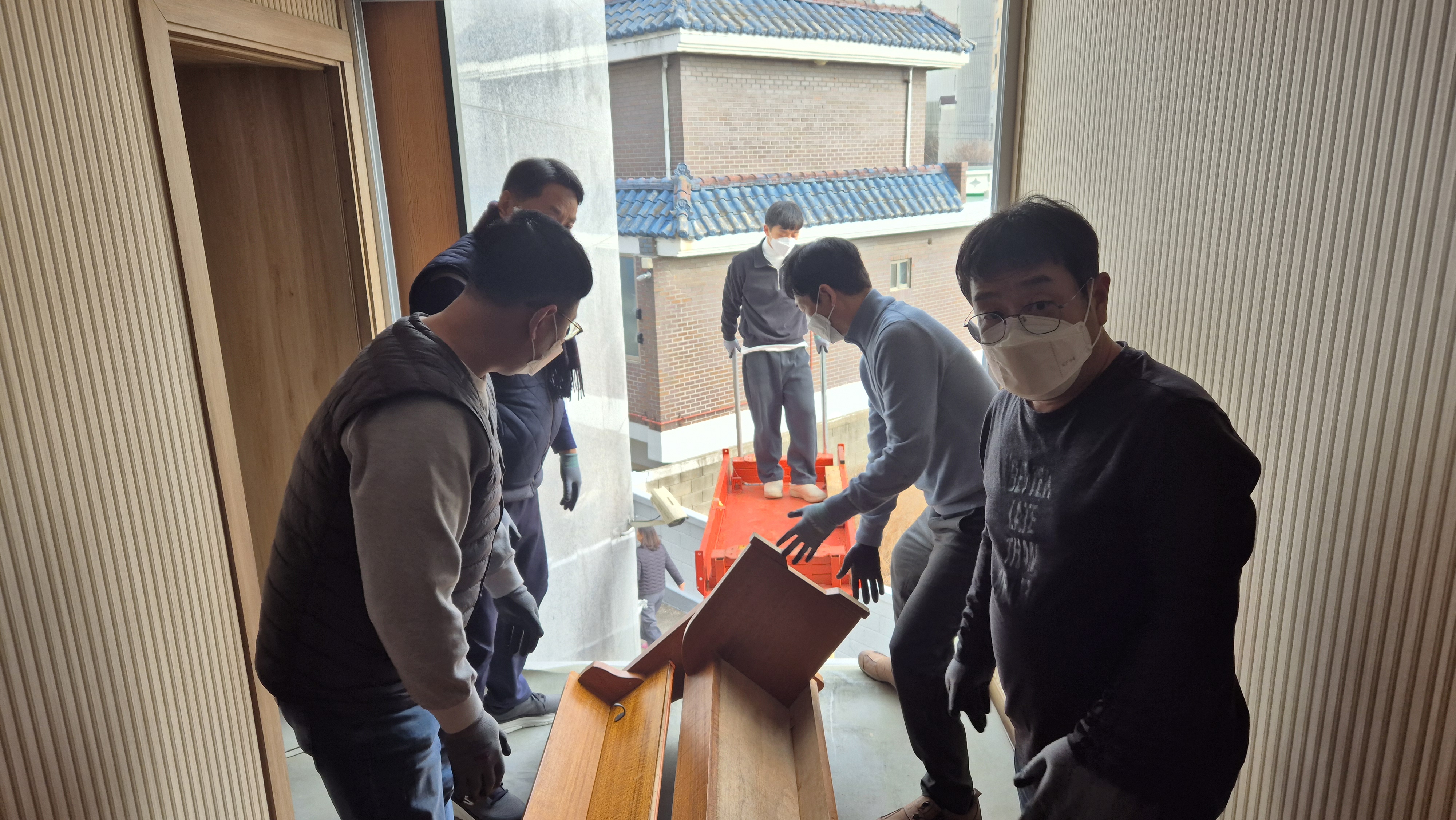 1) 장의자 반출 작업
